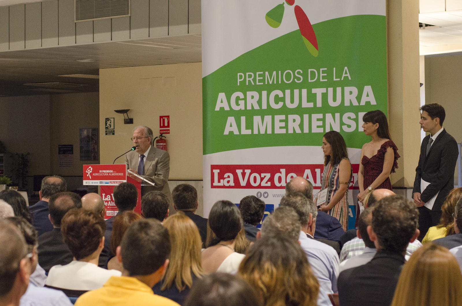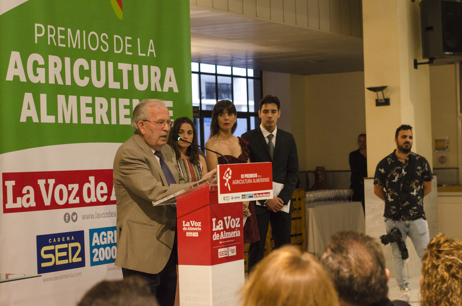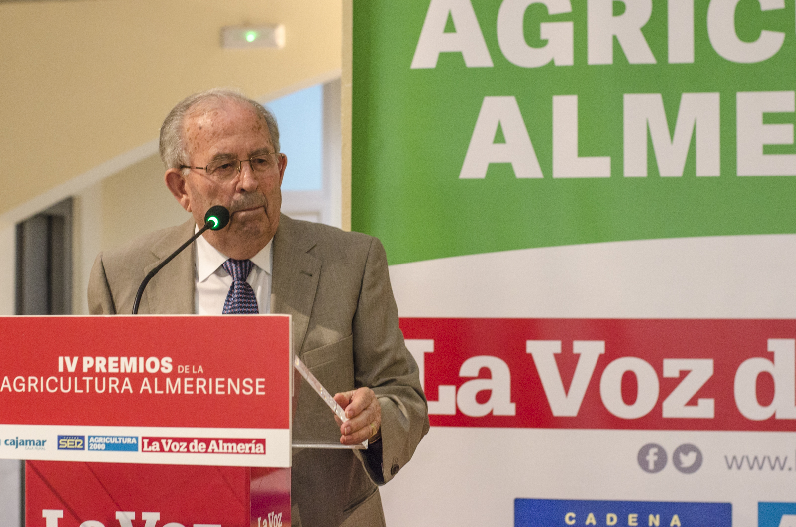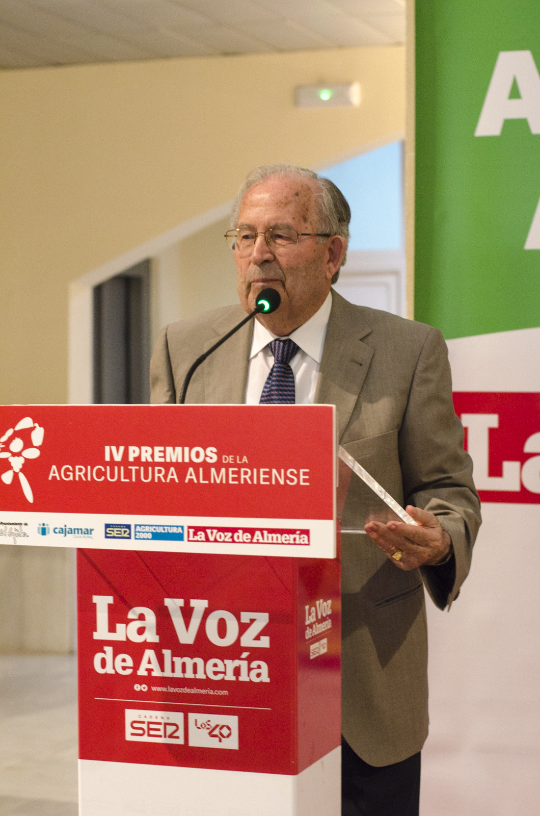 Don Lorenzo Belmonte recibió ayer el Premio por el Compromiso Tecnológico por su trayectoria laboral. El patio de luces del Ayuntamiento de El Ejido acogió la cuarta edición de estos galardones impulsados por La Voz de Almería, Agricultura 2000 y Cadena ser Provincia de Almería; que reconocen a empresas, entidades y personas cuyo compromiso con el sector de la agricultura merece ser destacado.