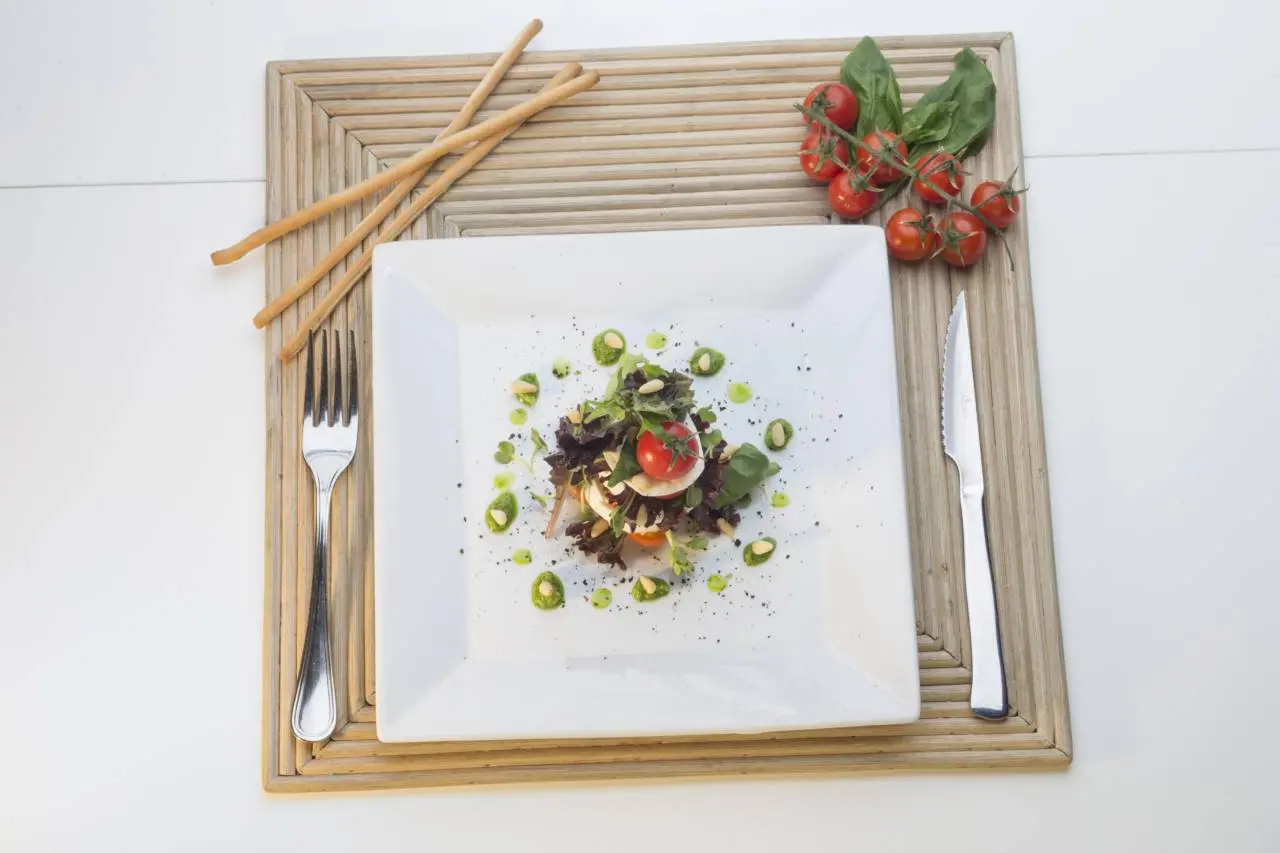 presentacion Ensalada capresse con mozarella y tomates cherry