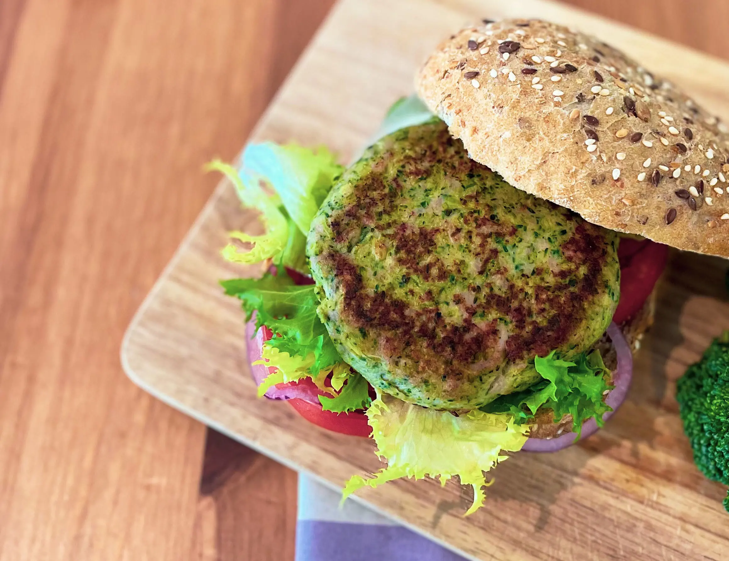 Hamburguesa de pollo y brócoli